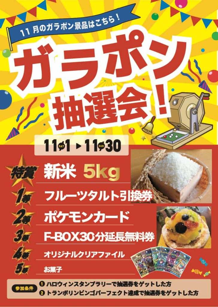 11月1日(土)~11月30日(日)まで、秋のガラポン抽選会を実施いたします!